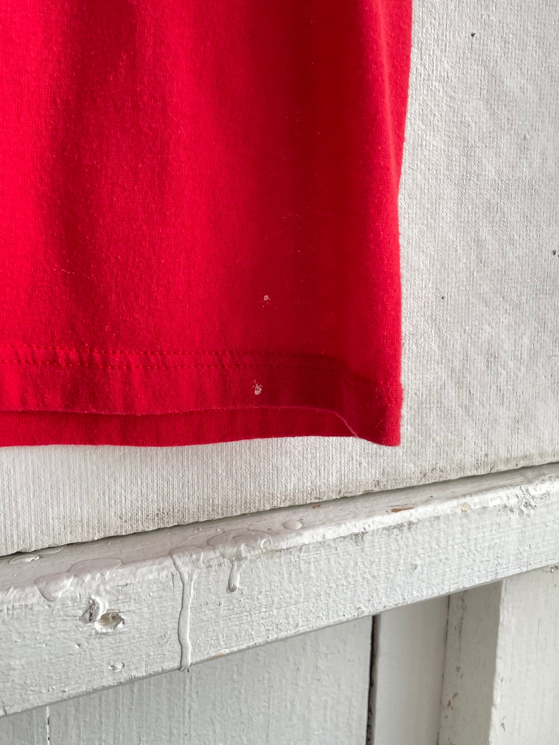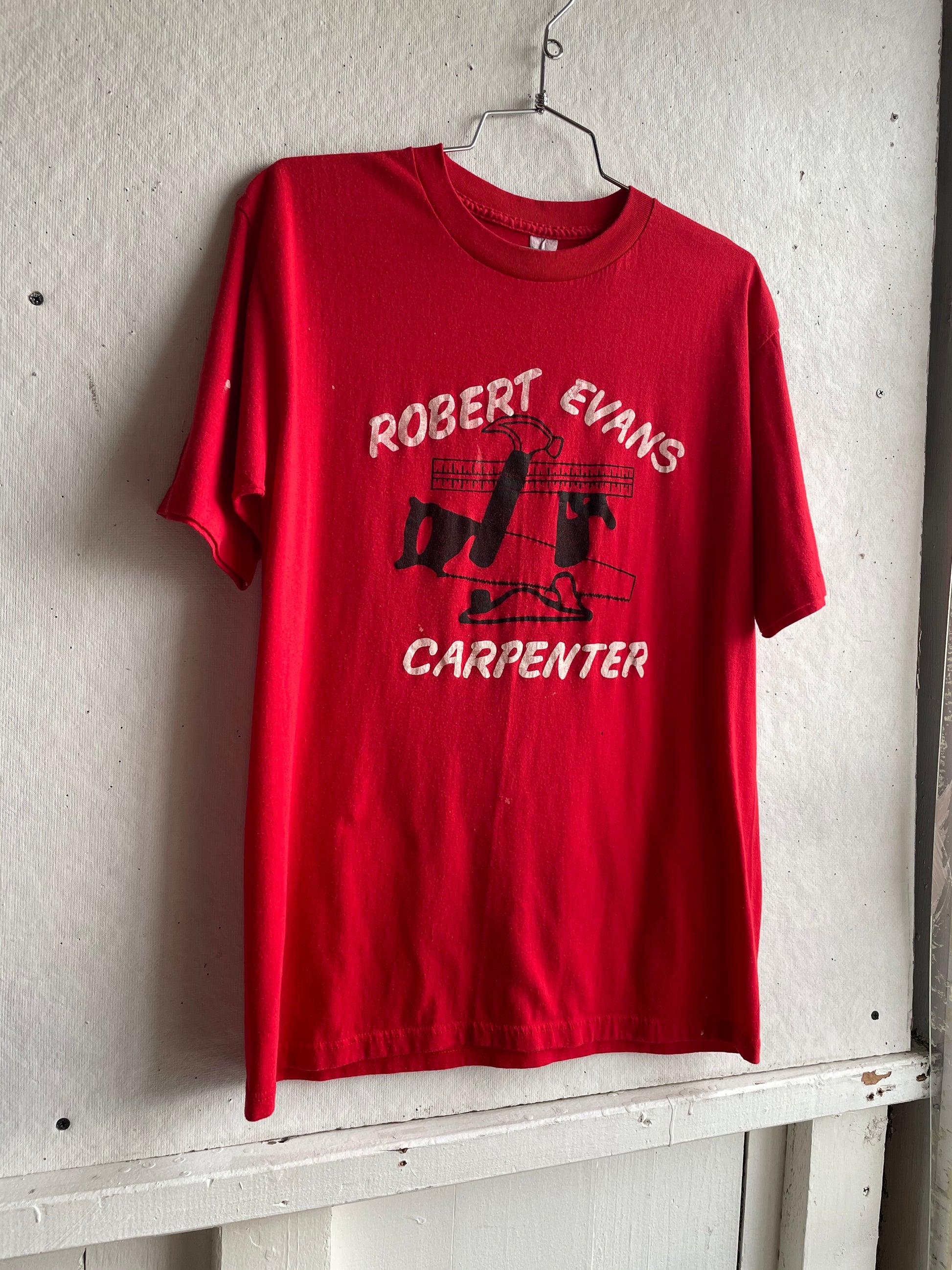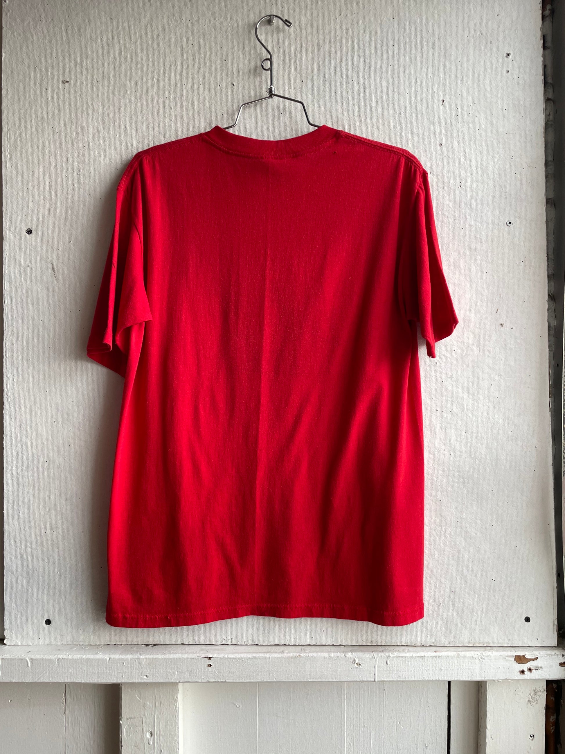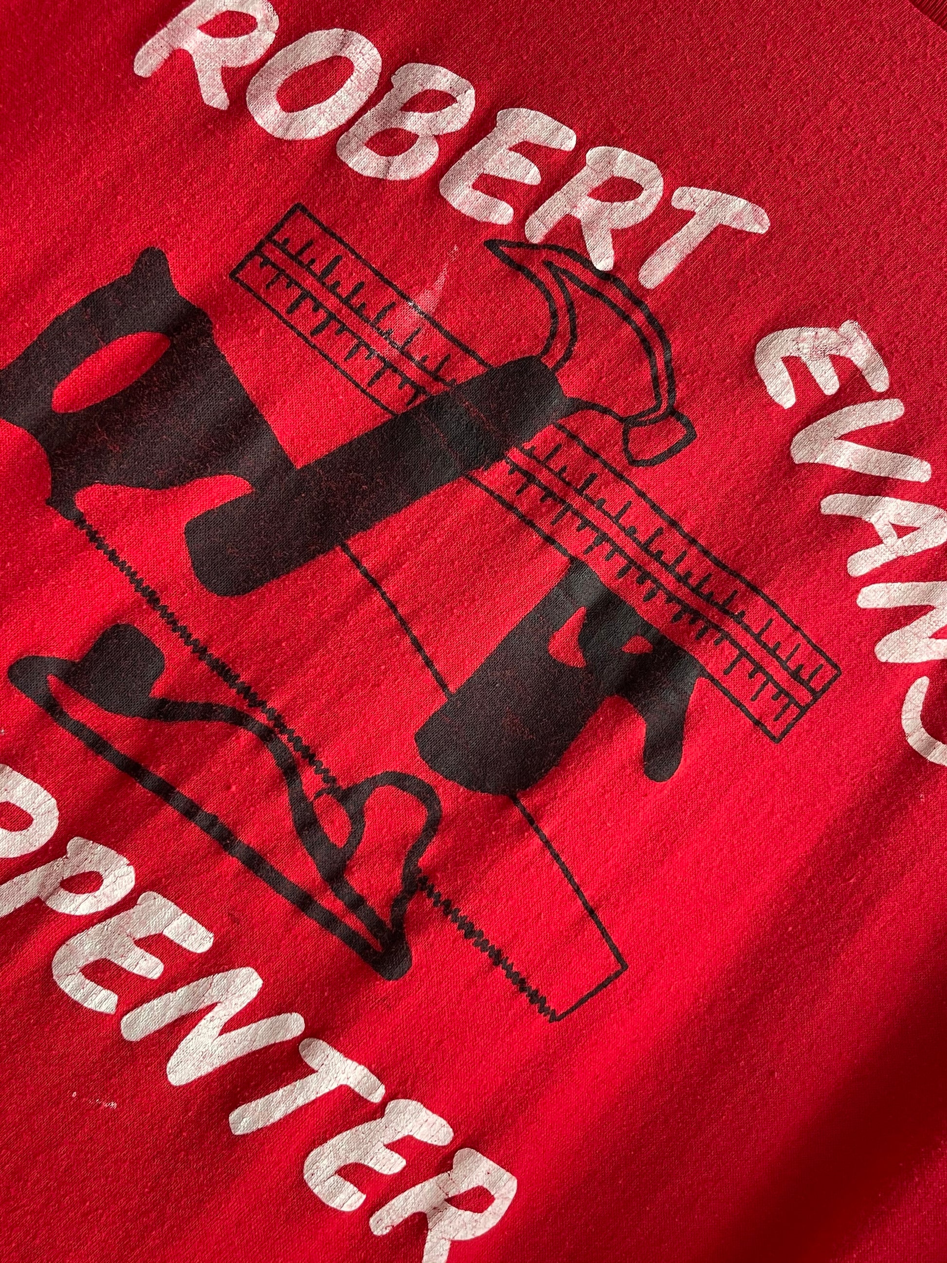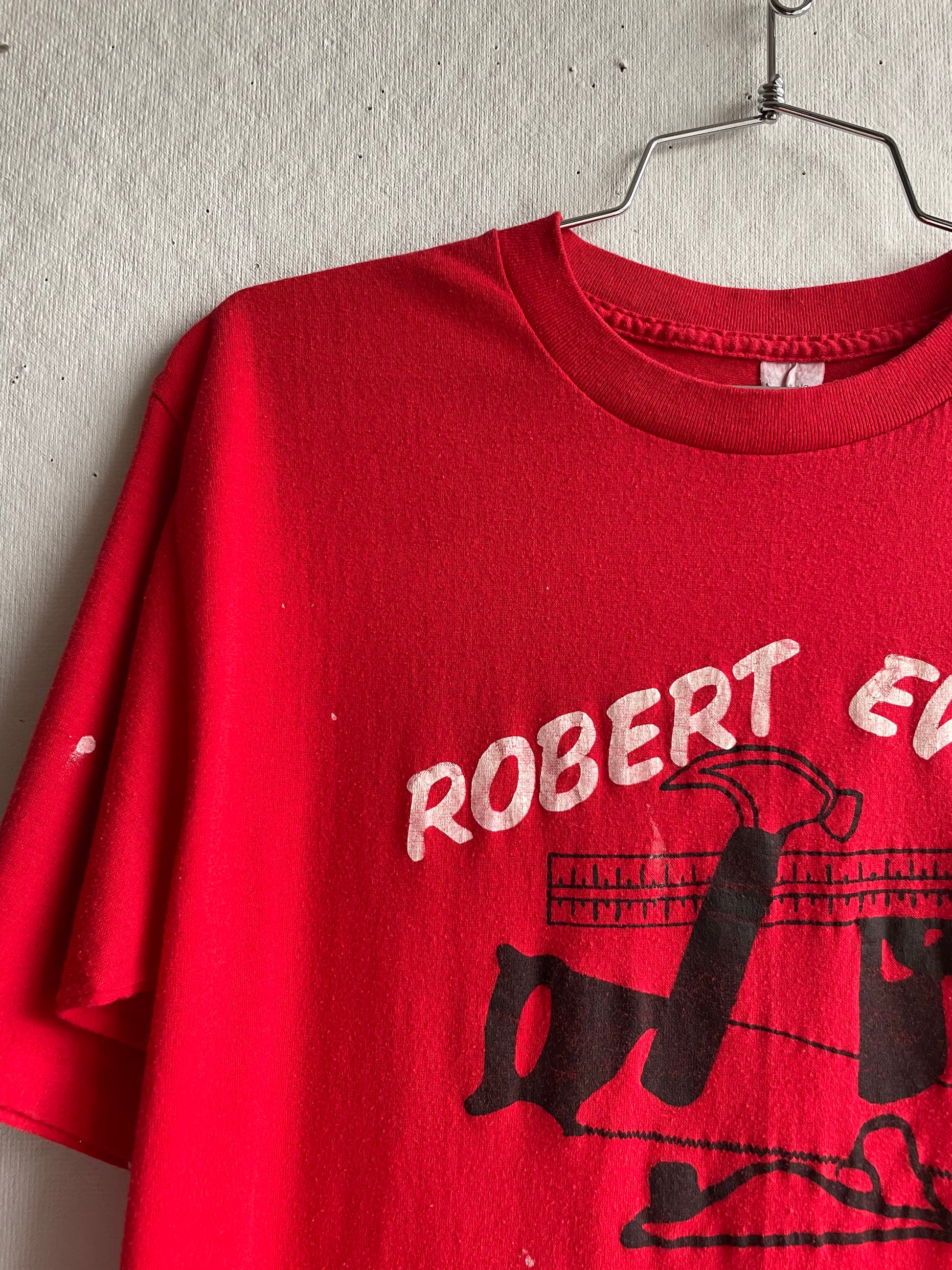Red vintage t-shirt with graphic illustrations of various tools. Is really soft and pre-loved.